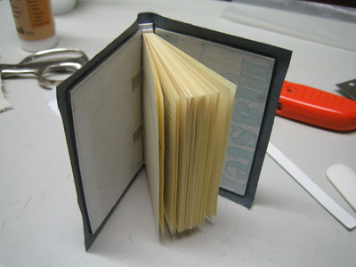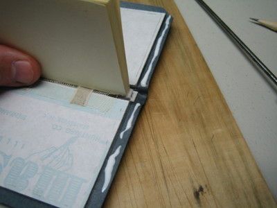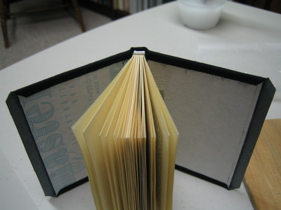 I use a small clean screwdriver to press the cloth into place inside the spine.